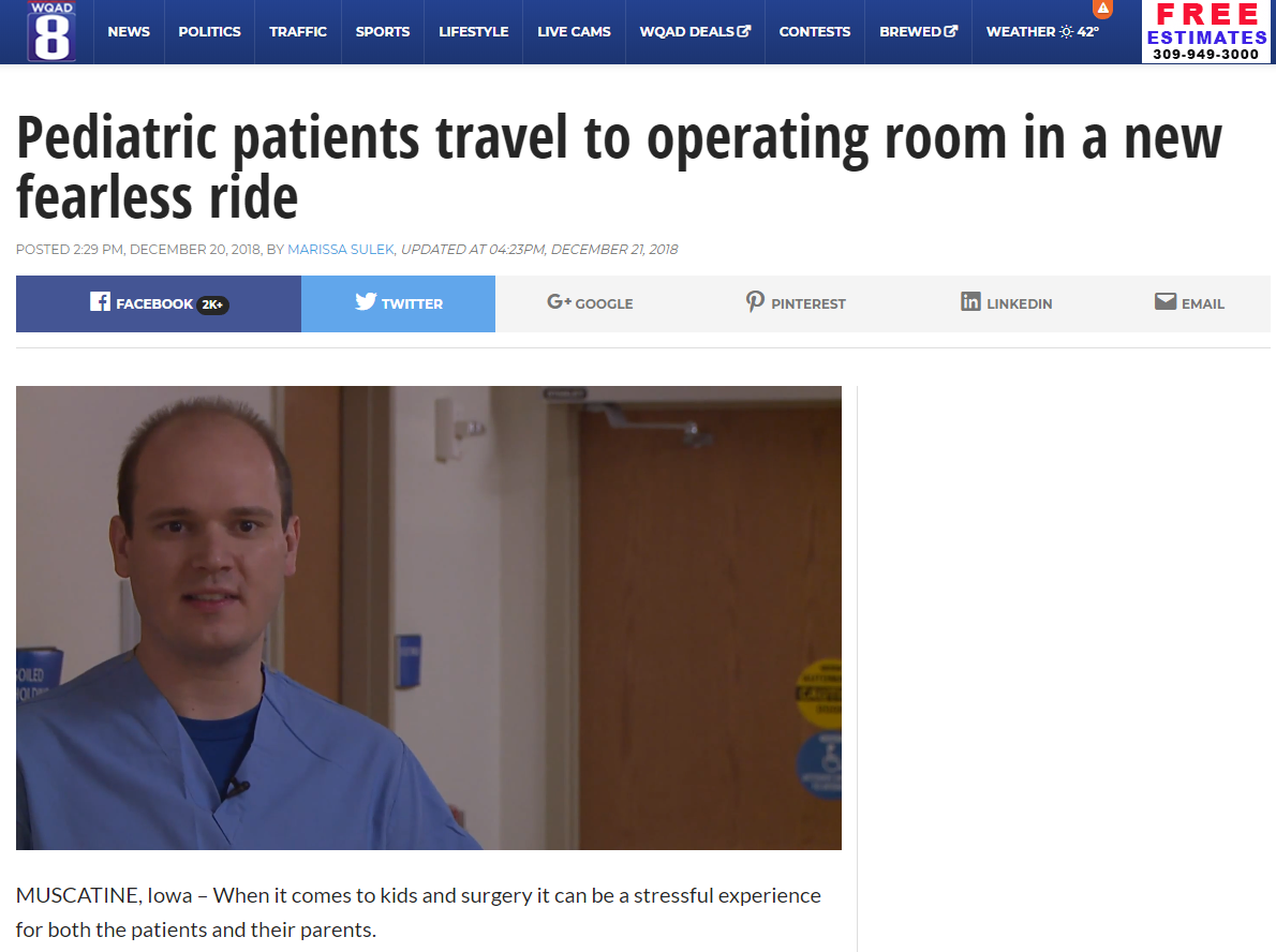 When it comes to kids and surgery, it can be a stressful experience for both the patients and their parents. Dr. Jarod Johnson is taking that matter into his own hands by introducing the Mouth Monster Truck to his patients at UnityPoint Health Trinity in Muscatine. Kids can ride the little truck to the operating room, and this helps keep these kids calm before their surgery. You can read about it here.